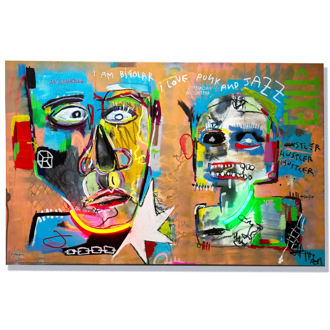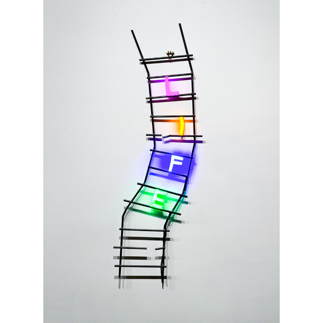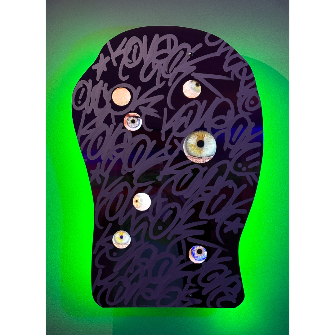 Photograph, paint, mirrored aluminum sheet and neon LED 12v